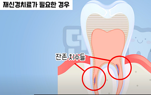 - 미세한 신경관까지 완벽히 신경이 제거되지 않은 경우: 복잡한 치아 신경관 구조 때문에 꼼꼼하게 제거하기 쉽지 않아 염증이 재발할 수 있습니다.